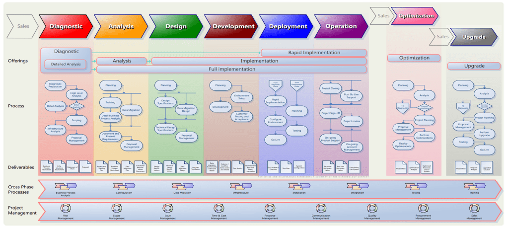 | Deployment | Set up the production environmentMigrate data to the production environmentConduct user acceptance test of the systemTrain users and finalize the user documentationConduct go-live check and promote the system to production |