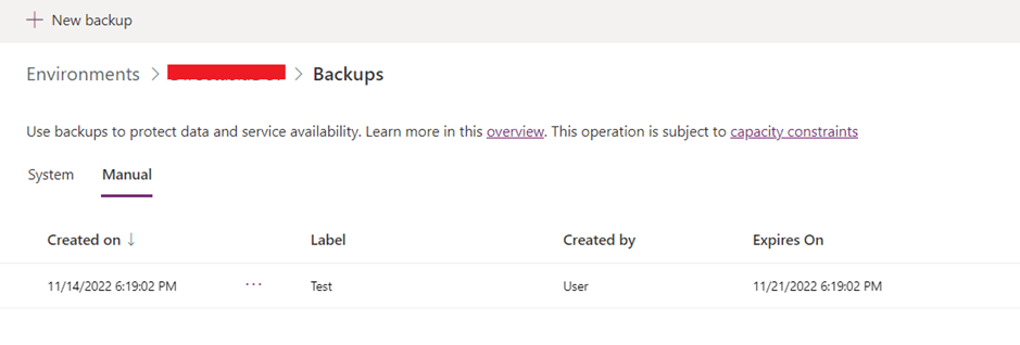 On click of Create it will ask to label and quickly it will create a backup of the environment.