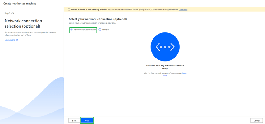 If you want to add any custom network setup you can do by clicking + New network connection as shown