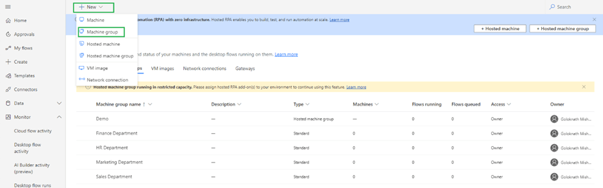 You can create new machine groups by clicking +New within machine group as highlighted below