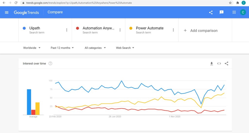 Just thought to check the trend analysis of Power Automate along with leading RPA products and result is amazing đ€© graph is increasing for Power Automate from last one year worldwide. Attached the snapshot for easy reference and anybody can analyse from their end as well.. đ