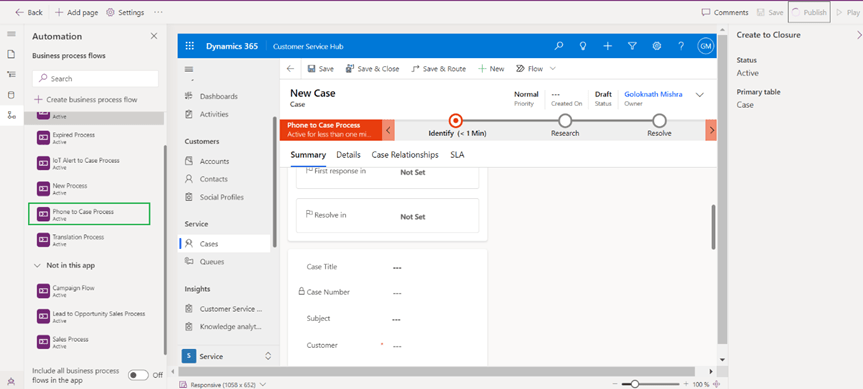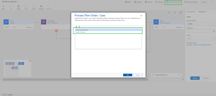 Now Case has 2 business process flow so you can select the order of BPF using order process flow button.