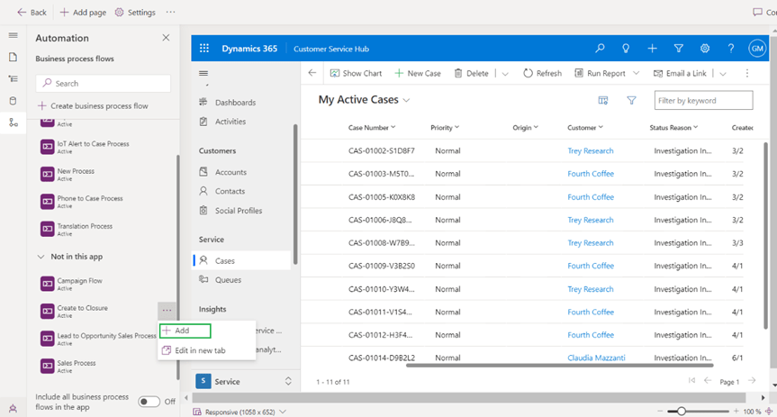 Then add the new business process flow to app as shown below