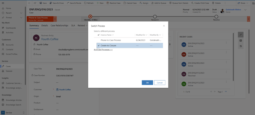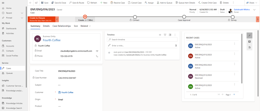 Then navigate to case form it displays the out of the box phone to case process.